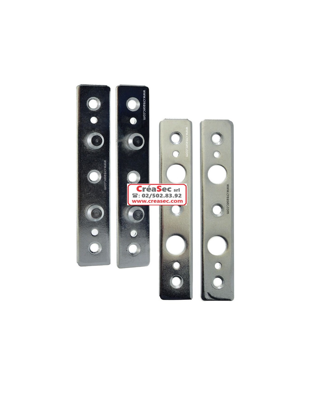 Protège gonds en acier. La partie femelle se fixe sur le chambranle, tandis que la partie mâle est généralement côté porte. En réalité c'est totalement indifférent. Le principal étant que toute la hauteur de la porte soit bien protégée