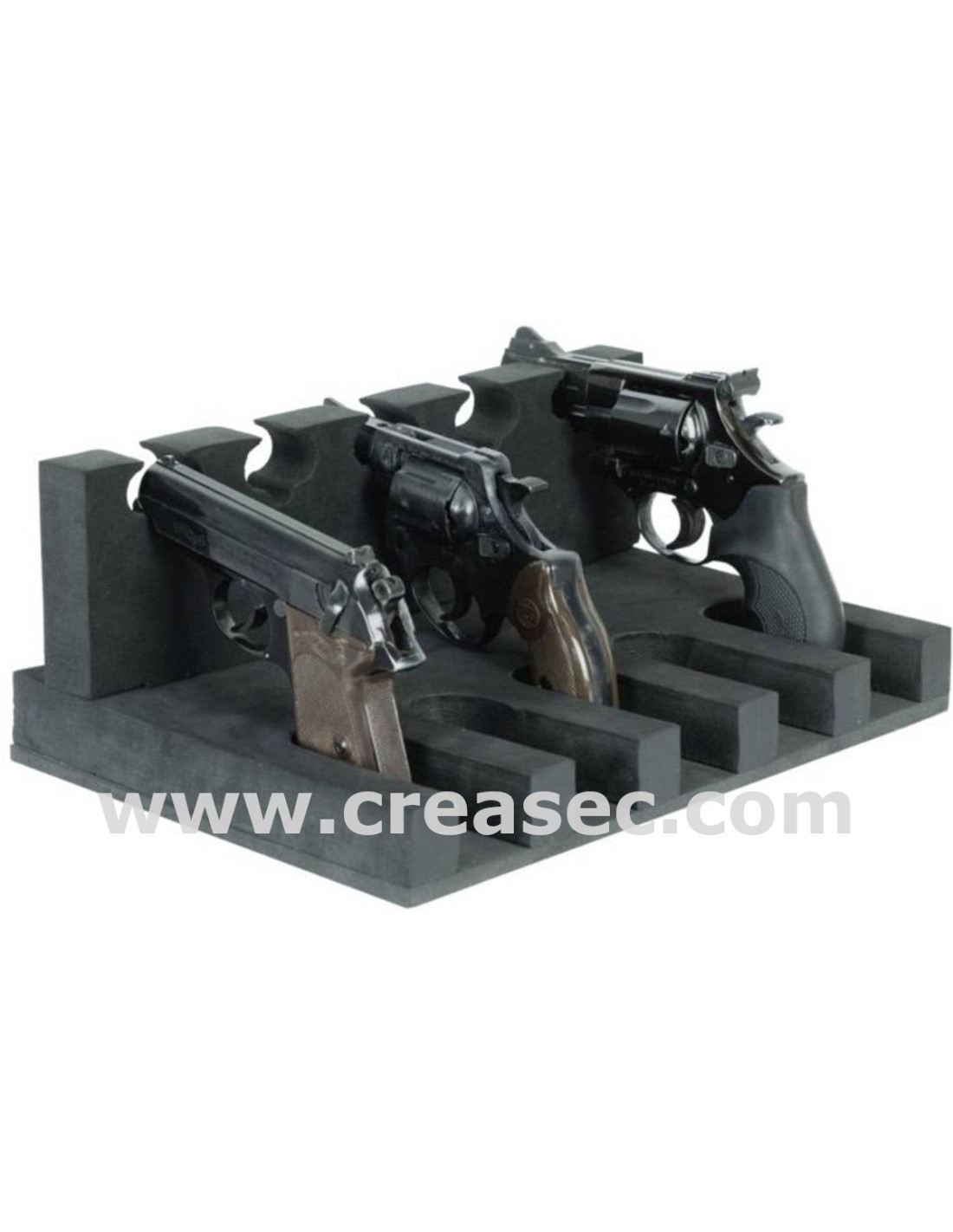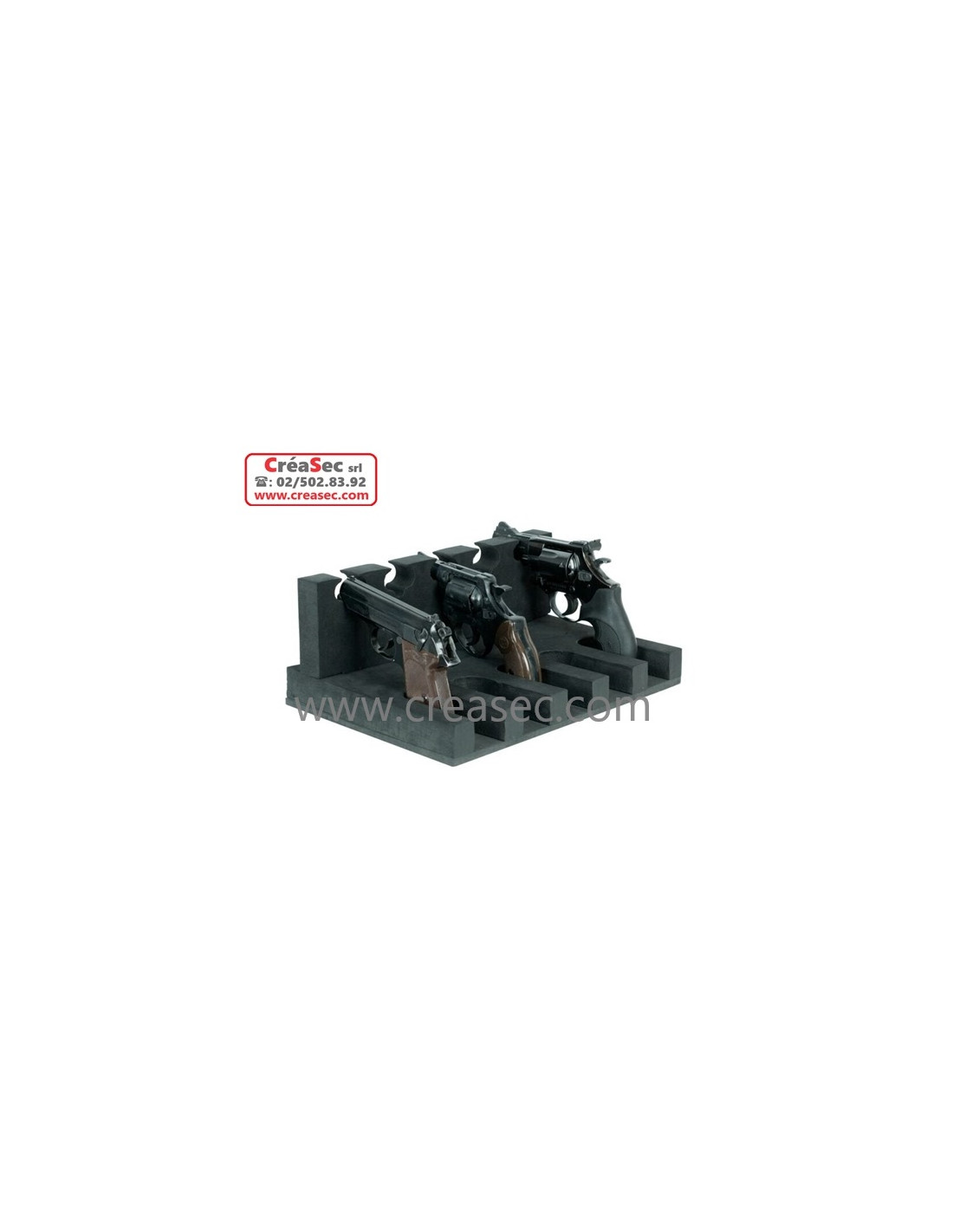 Support pour max 5 armes de poing. Adaptable facilement. Support en mousse robuste. Fixer par autocollant double face.