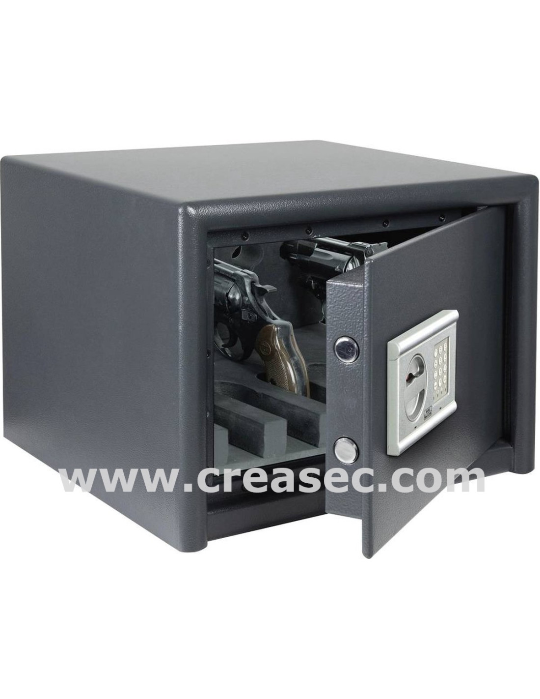Qu'il s'agisse d'un coffre-fort ou d'une armoire forte : Avec la fixation pour armes courtes KWH 5, chaque arme est entreposée à sa place attitrée. En effet, la fixation pour armes courtes vous permet d'entreposer jusqu'à cinq armes courtes séparément des autres objets contenus dans le coffre-fort. En y pensant, il est évident que les armes courtes doivent être déposées dans un endroit sûr et inaccessible aux intrus. La fixation pour armes courtes KWH 5 se compose de deux pièces en mousse stables que vous n'avez qu'à insérer ensemble. Grâce aux deux bandes autocollantes intégrées, vous pouvez alors fixer ce système de maintient dans le coffre-fort ou 'larmoire forte. L'insertion et le collage sont terminés en quelques secondes. Après quoi les armes courtes de différentes tailles trouveront leur place dans votre coffre-fort et y seront gardées de manière ordonnée et pour longtemps.