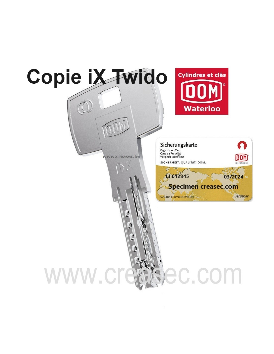 Refaire une clé Dom séries iX suivant carte de propriété. Ces clefs a multiprofils sont exclusivement reproduites par Dom. Un délai de +/- 1 semaine est à prévoir.