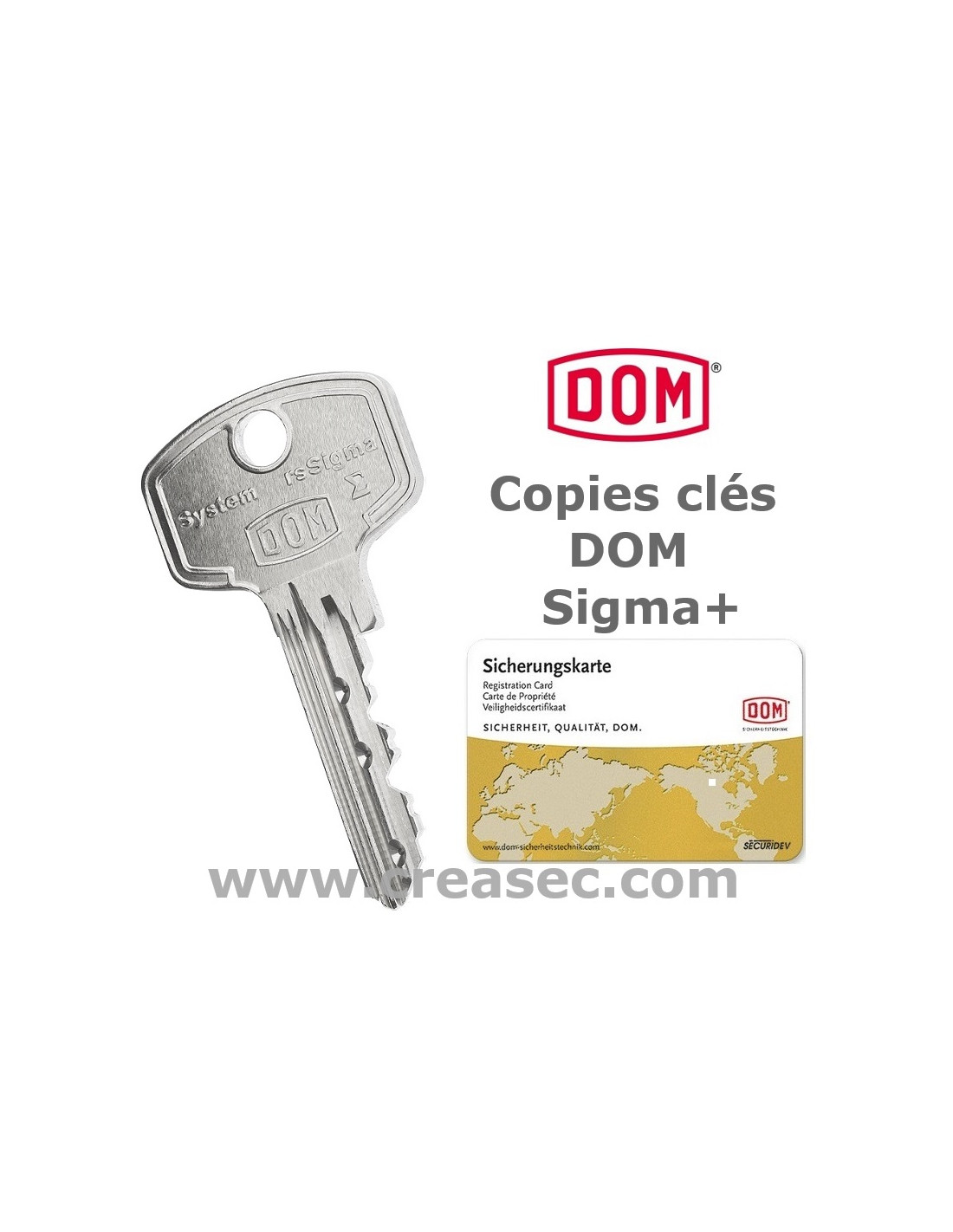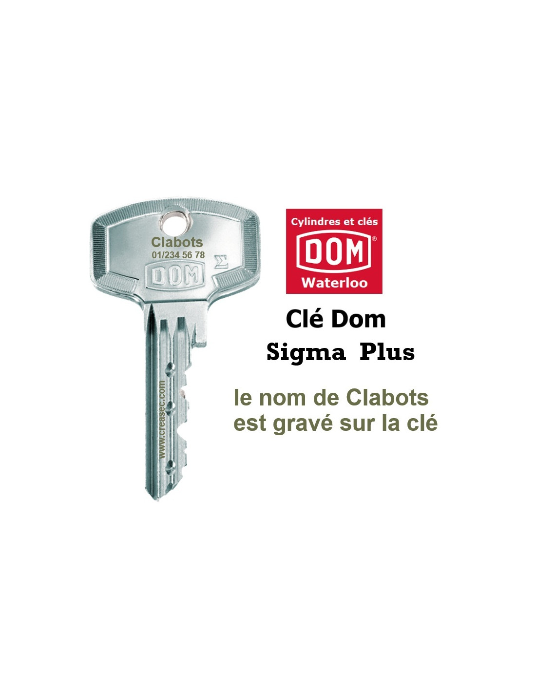 Reproduction de clés Dom avec le nom clabots grévé sur la tête de clé et suivant votre carte de propriété.