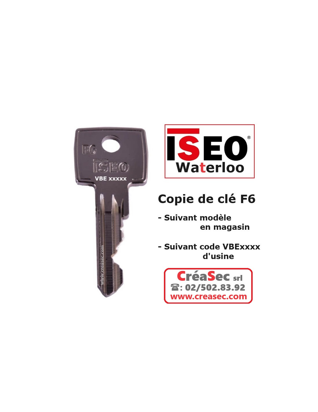 Double de clé ISEO F6 suivant code VBE. La clé aura son numero gravé sur la tête de clé.