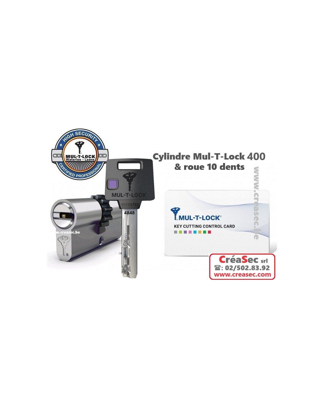 Cylindres MULTLOCK 400 de 33x33 (66mm)  modifié, ajout roue 10 dents pour serrures et portes blindées Mul-T-Lock.