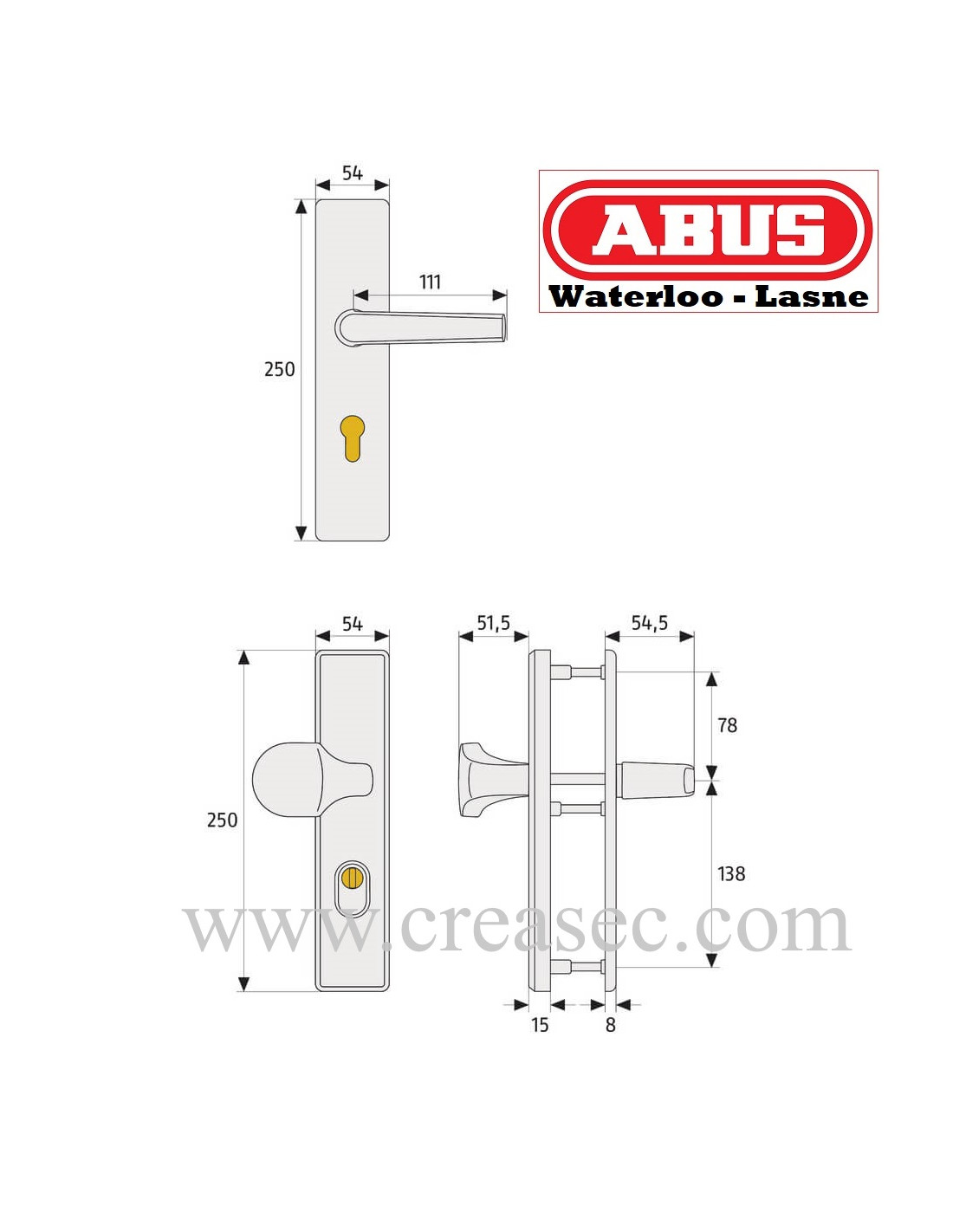 - entraxe : 72/85/92 ou 110 mm, tige carrée : 10 mm
